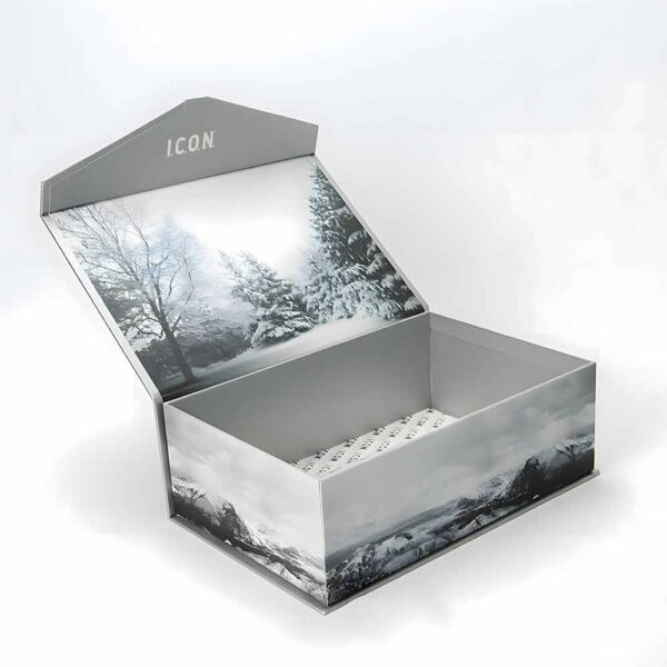 Packaging Hive offers Free Shipping on all Custom Flap Open Rigid Boxes to keep your packaging costs manageable. Our boxes are crafted with thick rigid stock that maintains shape and strength during storage and shipping. You can choose from premium finishes such as matte, gloss, soft-touch lamination, embossing, debossing, and foil stamping to match your brand style.