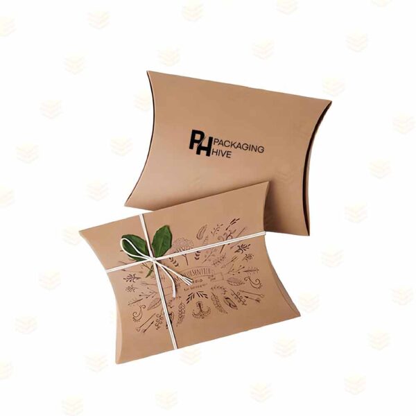 Custom Kraft Pillow Boxes by Packaging Hive provide an eco-friendly, practical, and attractive packaging solution for a variety of products. Designed with curved pillow-like edges, these boxes are easy to assemble and ideal for small retail items, gifts, cosmetics, jewelry, and confectionery. By choosing personalized designs, wholesale options, and high-quality kraft materials, businesses can maintain consistent branding and improve customer experience.